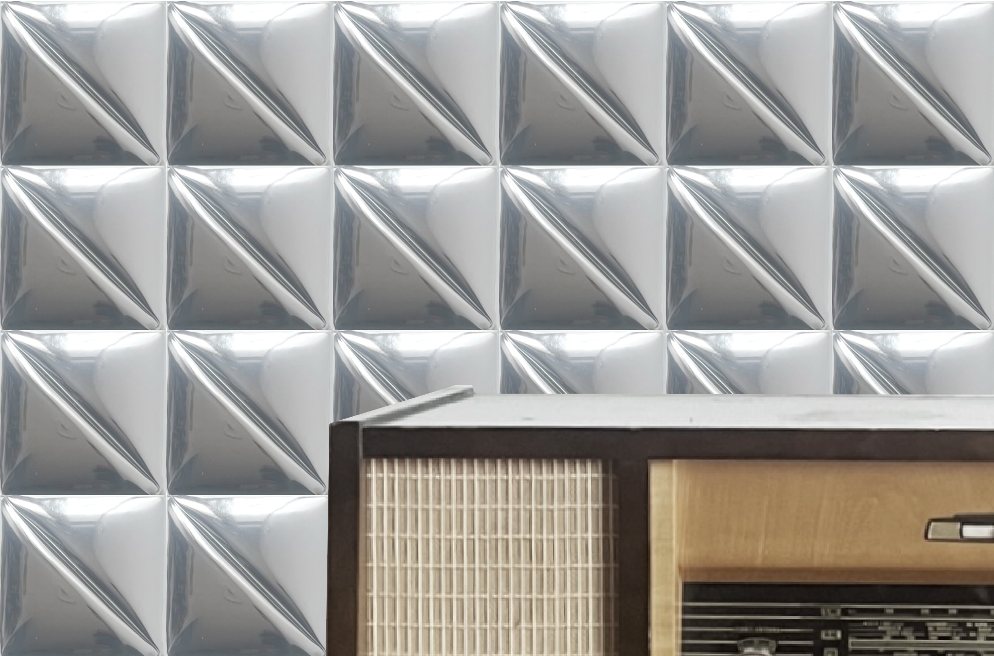 Quilted wall panels exploring geometry, contrast, and depth. Variations move between chrome and leather, matte and gloss. A modular system designed for flexible configurations or seamless, continuous installations with concealed mounting.