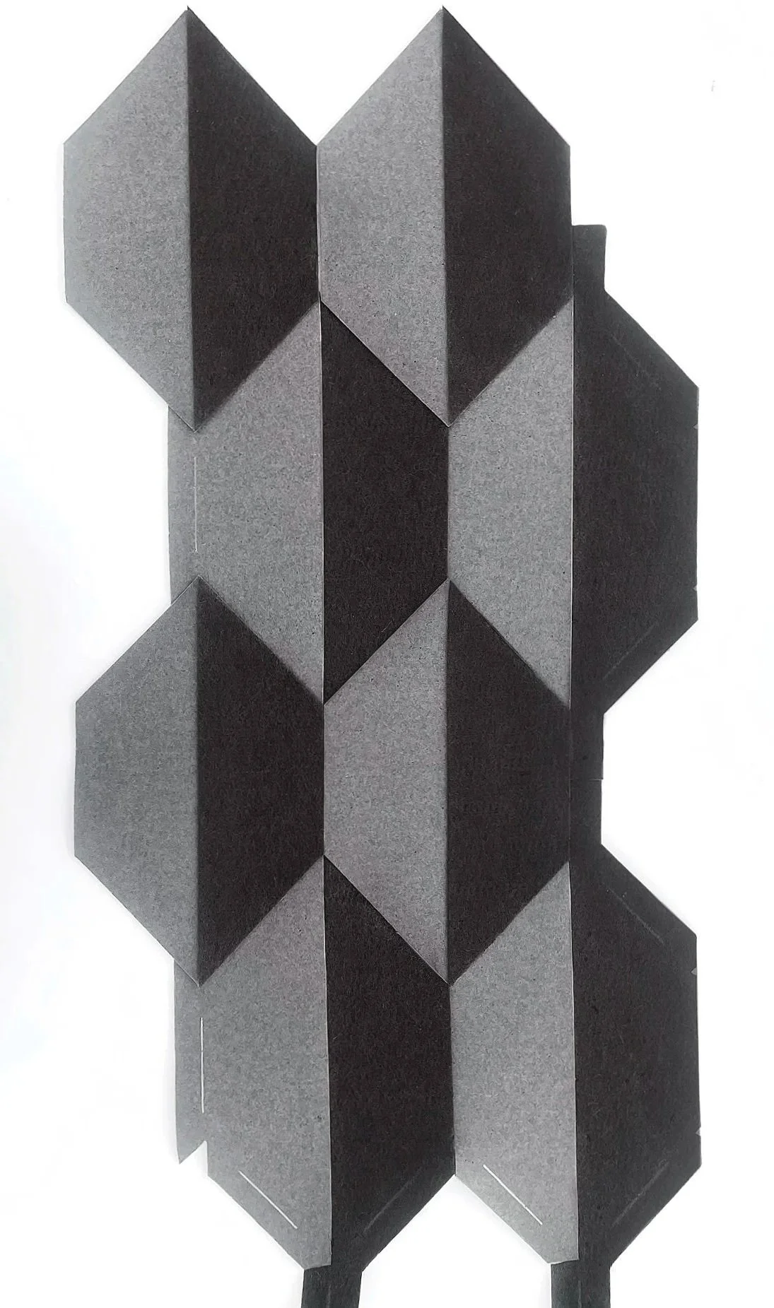 A geometric felt panel system with 3D peaks that add texture and support acoustic absorption. Mounting is concealed, allowing the panels to read as a continuous, seamless surface within architectural spaces.